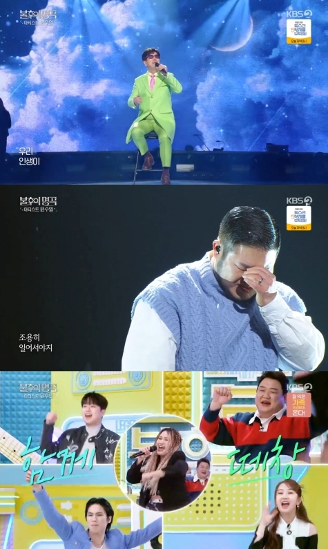 본격적인 경연에 앞서 ‘아파트 역주행’의 주인공, 윤수일이 신곡 ‘꿈인지 생신지’로 무대를 후끈 달아오르게 했다. 윤수일은 ‘영원히 행복하게 지내자’라는 메시지가 담긴 이 곡을 따뜻한 목소리로 편안하게 불러내 보는 이들의 미소를 자아냈다.
