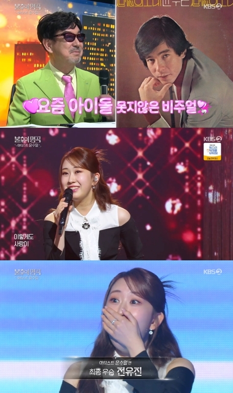 (엑스포츠뉴스 장인영 기자) ‘불후의 명곡’에서 스무 살이 된 전유진이 승률 100%를 달리던 라키를 꺾고 최종 우승의 자리에 올랐다. 실연의 아픔을 밝힌 전유진의 저음 보컬이 ‘사랑만은 않겠어요’와 제대로 맞아떨어졌다.