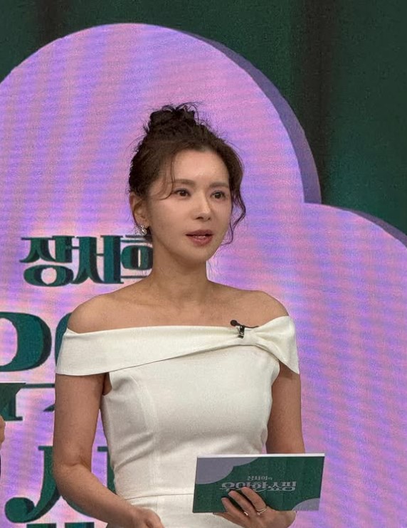 사진 속 장서희는 '우아한 쇼핑' 쇼호스트로서 진행을 맡고 있는 모습이 담겼다. 장서희는 우아한 매력을 극대화하는 오프숄더 드레스를 입고 눈부신 자태를 뽐내고 있다.