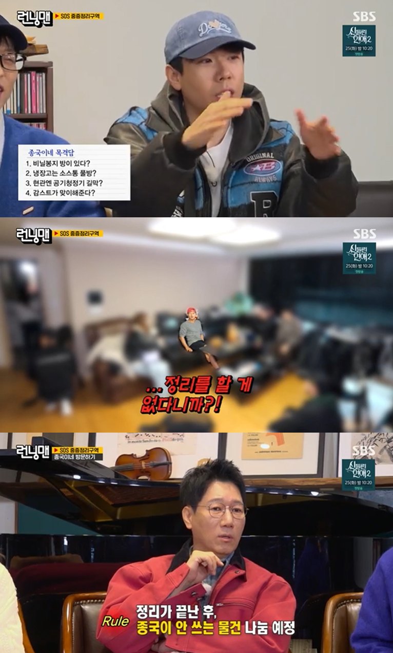 23일 SBS ‘런닝맨’에서는 멤버들이 다 함께 합심해 김종국의 집을 정리하는 모습이 펼쳐졌다.