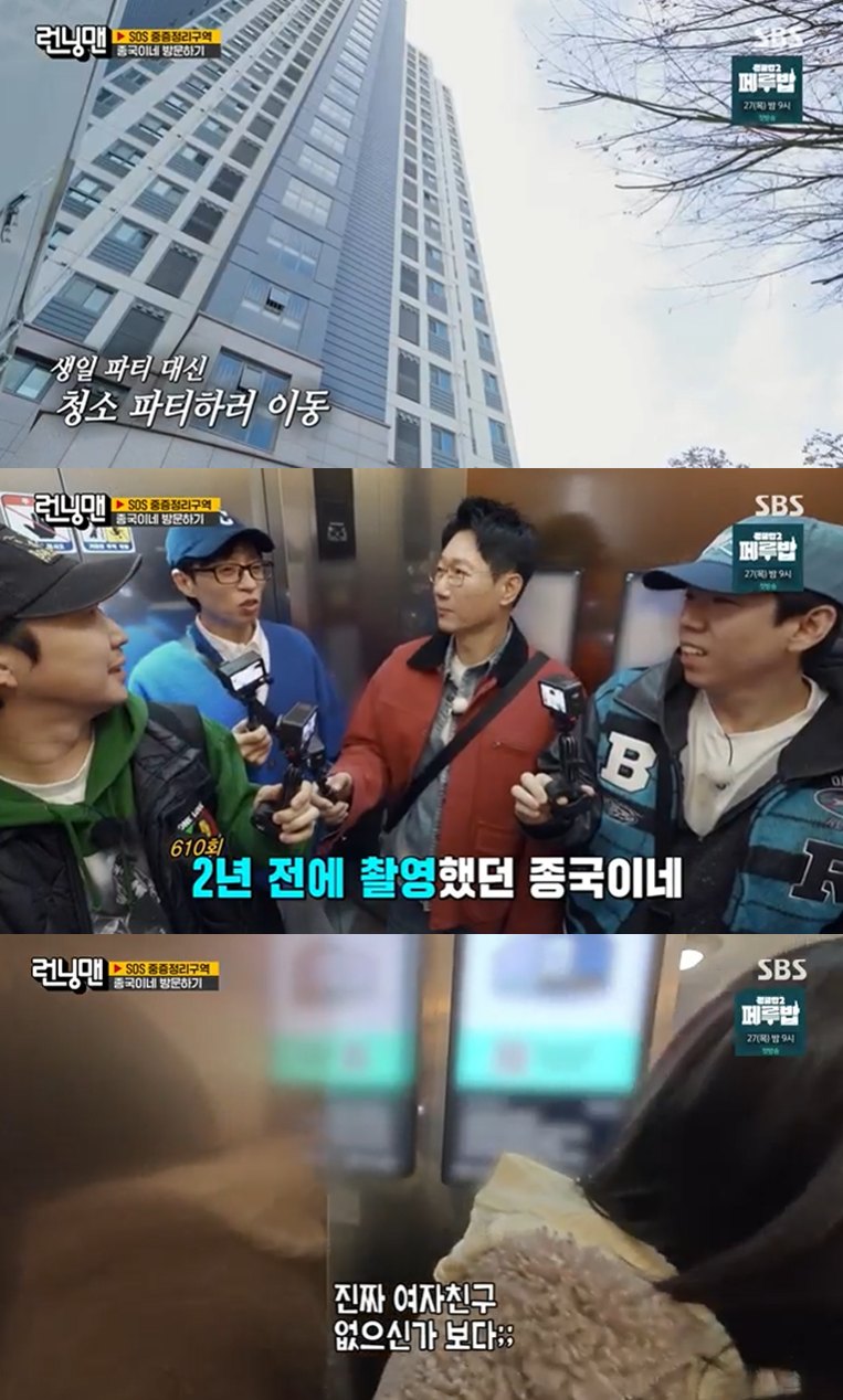 집으로 향하던 중 유재석은 "난 놀랐다. (지난 610회 방송 이후) 2년만에 이렇게 되나"라며 김종국 집 상태가 좋지 않다고 말했고, 이를 들은 지예은은 "진짜 여자친구 없으신가 보다"라고 말해 웃음을 유발했다.