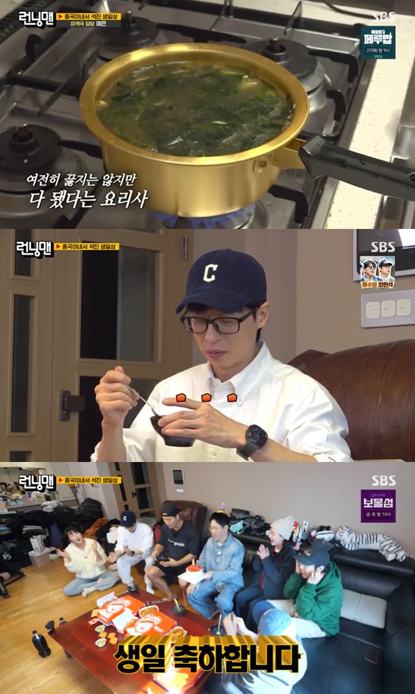 한편 청소를 마친 멤버들은 김종국 집에서의 '석진 생일상' 미션을 진행하게 됐고, 이를 위해 지예은이 미역국을 끓였다.