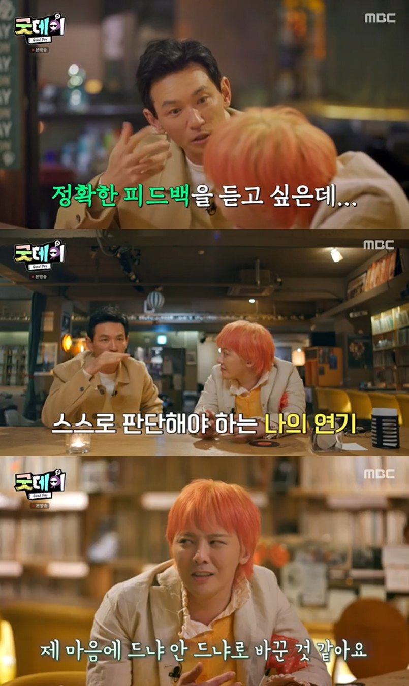 이어 황정민은 주인공의 어려움에 대해 토로하기도 했다. 그는 "주인공이 되고, 주인공을 하다 보니까 주변 사람들이 '잘한다' 얘기만 한다. 정확한 피드백이 듣고 싶은데"라면서 "내가 스스로 내 연기를 판단해야 되는 게 너무 힘들다"고 말했다. 그러면서 지드래곤에게 "(POWER 앨범) 8곡을 프로듀싱하면서 스스로 판단하는 게 힘들지 않냐. 그거 어떻게 하냐"며 고민을 상담했다.