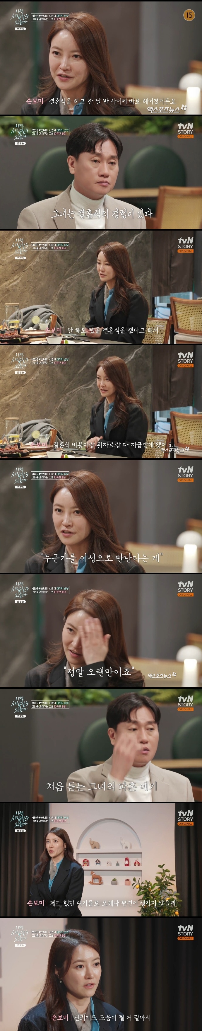 손보미는 "결혼식을 하고 한 달 반 사이에 바로 헤어졌다. 혼인신고는 안 했다. 그런데 결혼식 전에 알아야 했을 사항을 뒤늦게 알게 되면서 그분과의 인연을 이어나가지 않고 마무리를 짓게 됐다. 안 해도 됐을 결혼식을 했다고 해서 결혼식 비용과 위자료를 다 지급 받았다. 그 과정 중에 결혼도 남자도 아이에 대한 꿈도 회의적으로 변해서 3년 동안 계속 일만 했다. 누군가를 이성으로 만난다는 게 일 빼고 정말 오랜만이다. 억울하기도 하다. 차라리 안 했으면 좋았을 텐데 이미 일은 벌어졌고 과거는 과거이니 앞으로 잘 살아야 한다"라며 파혼 사실을 털어놓았다.