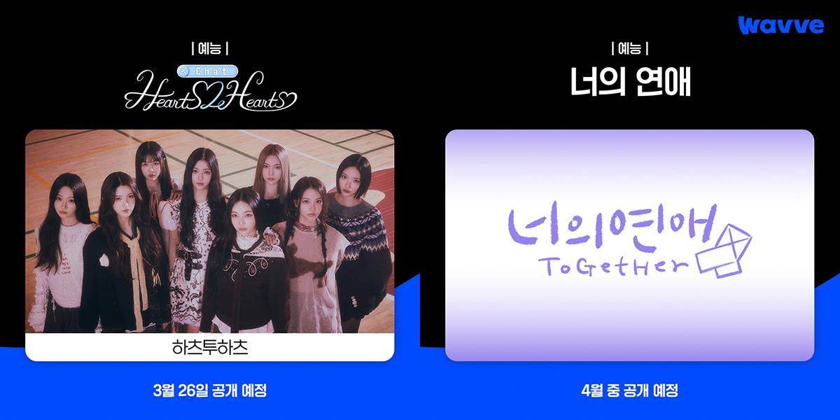 SM엔터테인먼트에서 4년 만에 공개되는 새로운 걸그룹 '하츠투하츠'의 모든 것을 확인할 수 있는 리얼리티 예능이 오는 3월 26일 웨이브에서 가장 먼저 공개된다. 'Chat Hearts2Hearts(챗 하츠투하츠)'는 인공지능 AI 방식을 차용하여 '하츠투하츠'에 관한 모든 것을 대답해주는 리얼리티 예능이다. 팬들이 궁금해하는 사소한 것들은 물론, SM 입사 계기부터 연습생 스토리와 첫 예능에 이르기까지 '하츠투하츠'의 모든 순간을 가감 없이 확인할 수 있다. 웨이브는 출범 이후 지속적으로 아이돌 리얼리티 예능을 오리지널 콘텐츠로 선보이고 있다. 레드벨벳, NCT DREAM, 에스파 등 다양한 아이돌 리얼리티들이 완청률에서 특히 높은 성과를 보이며 시청 시간을 견인하고 있다.