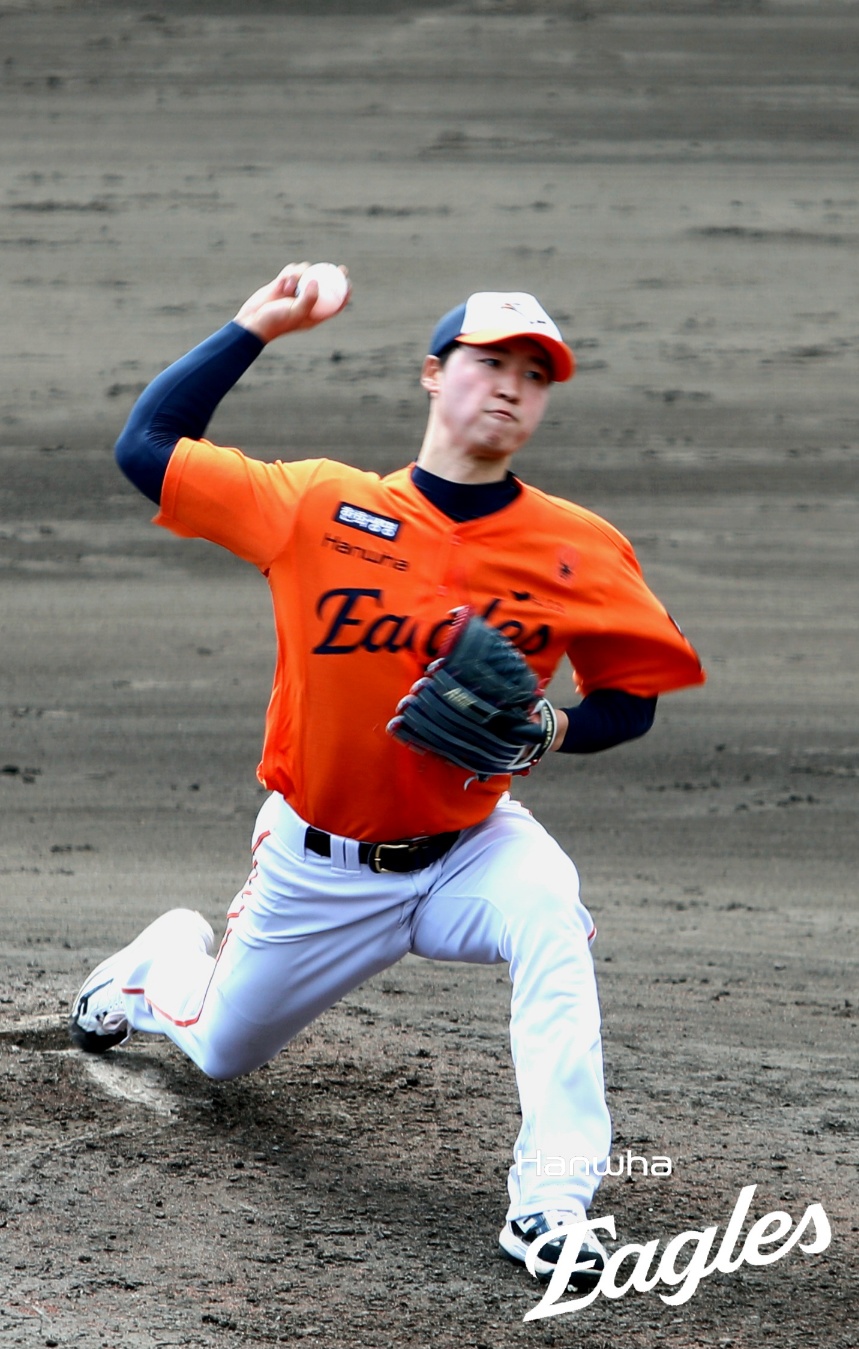 (엑스포츠뉴스 일본 오키나와, 김지수 기자) 한화 이글스 강속구 사이드암 엄상백이 팀 이적 후 비공식 데뷔전을 성공적으로 마쳤다. 완벽하지는 않았지만 조금씩 페이스가 올라오는 모습이었다.