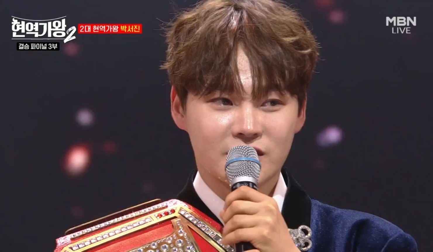 눈물을 글썽인 박서진은 "정말 우승할지 몰랐다. 국민 여러분들이 선택해주신 거라고 생각한다"며 "머릿속이 하얘진다. 더 열심히 하겠다. 추운 날씨에도 나가서 문자투표 하며 응원해주신 팬분들께 너무 감사하다"며 허리 숙여 인사했다.