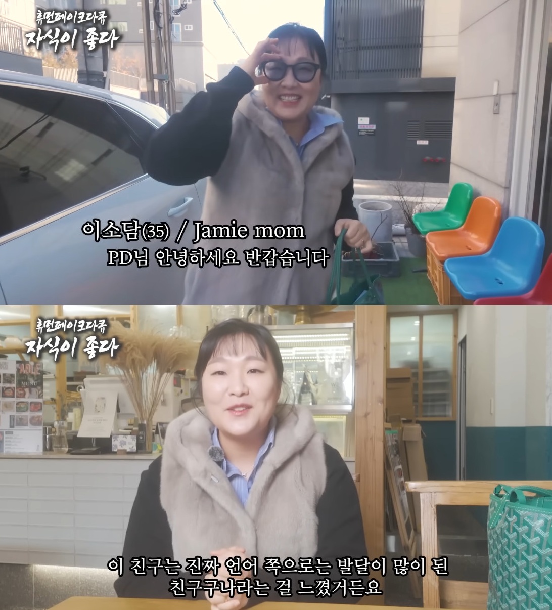 새롭게 공개된 '제이미 맘'은 이번에는 밍크 조끼와 초록색 명품 백을 들고 등장해 눈길을 끌었다.