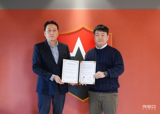 지난 18일 서울 구로 농심e스포츠 센터에서는 공식용품 파트너십 협약식이 진행됐다. 이 자리에는 오지환 농심 레드포스 대표, V-EXX 이정규 대표 등 양사 관계자들이 참석했다.