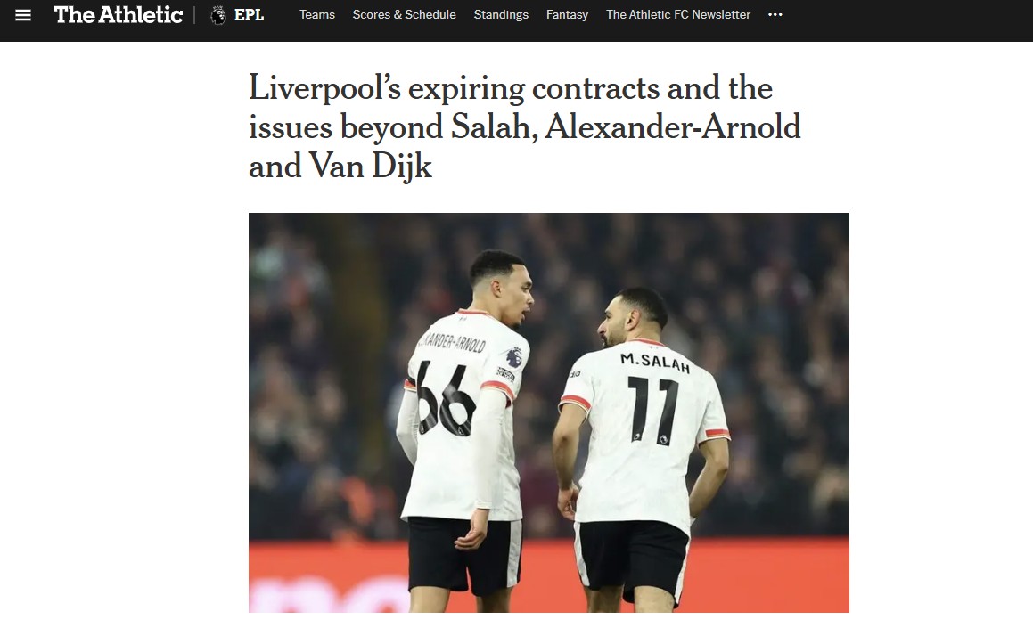 높은 공신력을 자랑하는 글로벌 매체 '디 애슬레틱'은 26일(한국시간) 리버풀 소속 모하메드 살라, 알렉산더-아놀드, 버질 판 데이크 등 둘러싼 재계약 이야기를 다뤘다.