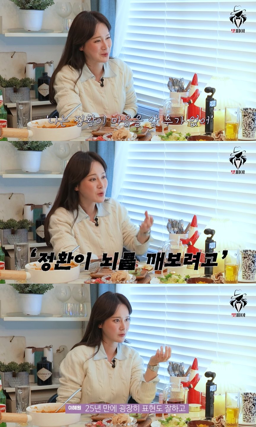 영상에서 이혜원은 남편 안정환의 대화방식에 대한 이야기를 했다. 그는 “남편이 가끔 말을 임팩트 있게 할 때가 있다. 시집 보는 걸 좋아하고, 글도 잘 쓴다”고 말했다.