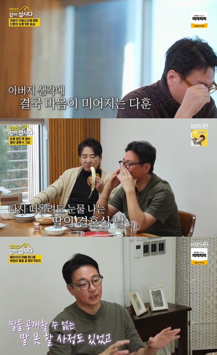 딸의 결혼식을 떠올리며 윤다훈은 "결혼식에 내가 아이 손을 잡고 들어갈 때, 내가 더 많이 울었다. 딸한테 내가 못해준 게 (생각났다)"며 울컥했다.