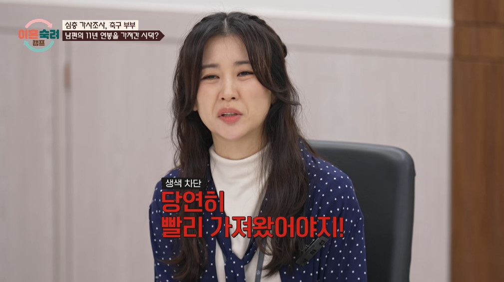 억대 연봉으로 활동했음에도 돈을 받지 못했다는 남편은 "저도 나이도 20대 후반에 돈을 가지고 오려 했던 이유가 결혼 할 수 있는 나이고 선택할 수 있는 나이였다"라고 해명을 시작했다.