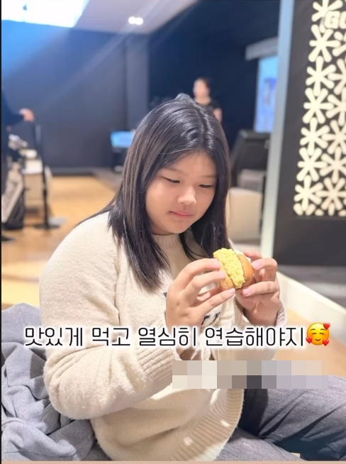 27일 이동국 아내 이수진은 "하교 후 골프 레슨 중인 수아", "맛있게 먹고 열심히 연습해야지", "물 없이도 오물오물 냠냠"이라는 글과 함께 영상을 올렸다.