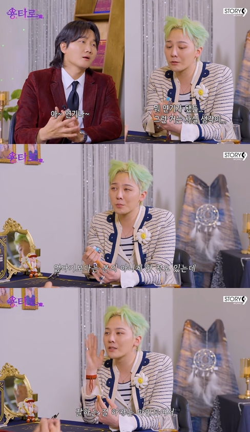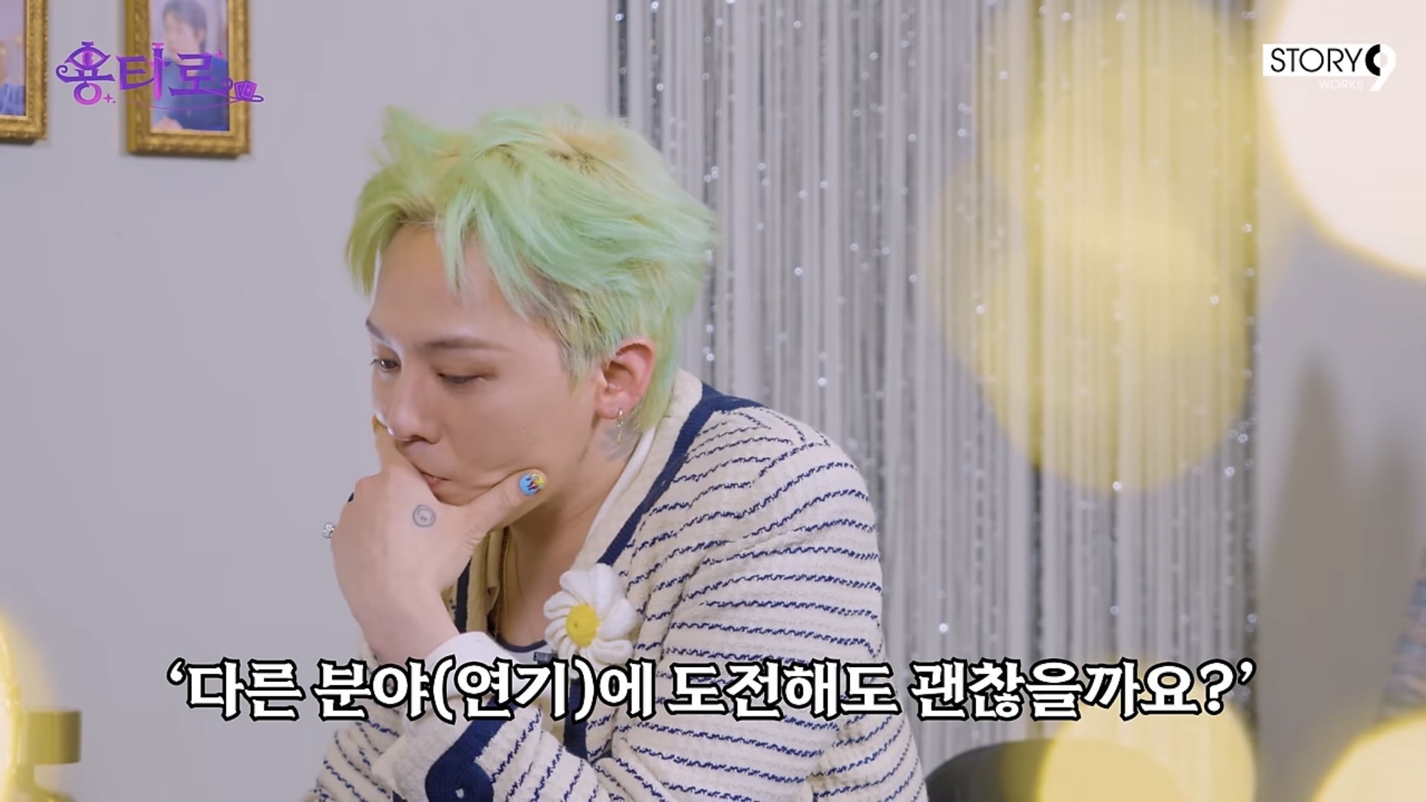 이에 이용진은 '다른 분야(연기)에 도전해도 괜찮을지'에 대한 타로를 보겠다고 말했다. 그러자 지드래곤은 "여러 가지 제안이나 제의가 감사하게도 들어오는데 그때마다 제가 정중하게 고사했다"라고 털어놨다.