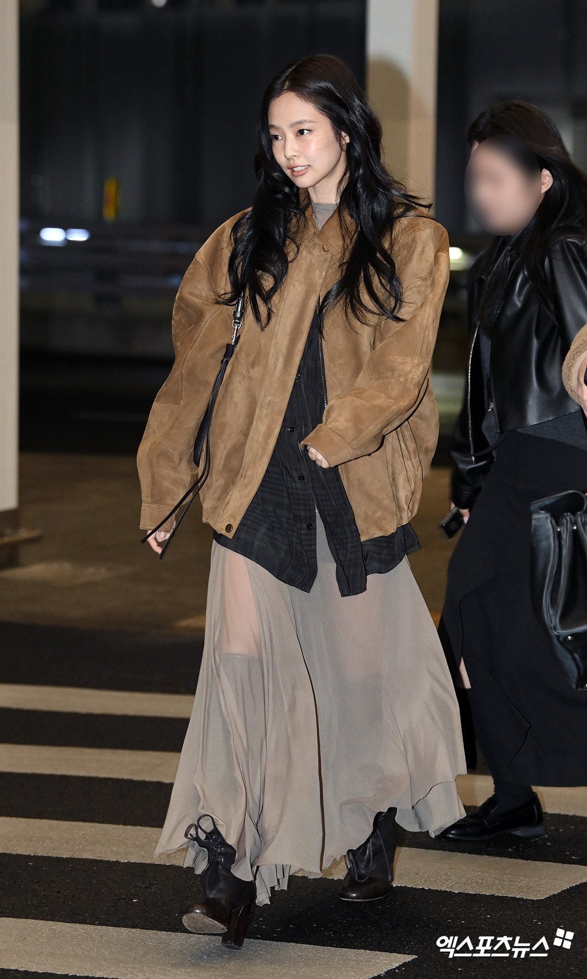 블핑 제니, 스웨이드 재킷+시스루 레이어드 '이래서 스타일 아이콘'