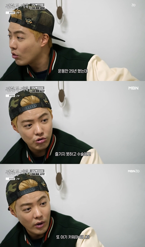 강남은 아이를 천천히 갖으려는 이유에 대해 "상화가 사실은 무릎이 안 좋다. 무릎이 운동을 너무 많이 해서 아직도 안에 혹 같은 거랑 뼈 깨진 것들이 많다"라고 말문을 열었다.