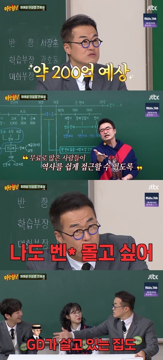 '무료 강의' 최태성, 속내 밝혔다..."나도 벤츠 몰고 GD 집 살고파" (아형)