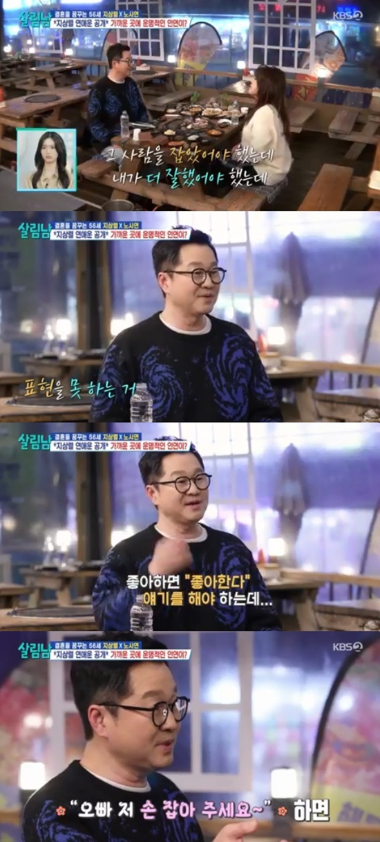 지상렬은 "표현을 못했다. 좋아하면 좋아한다고 얘기해야 하는데 못한다. '오빠 저 손 잡아주세요' 하면 자연스럽게 잡으면 되는데 '손? 왜?' 이런다"면서 자책을 했다.