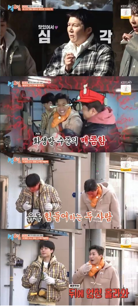 이에 김종민과 유선호가 서로 바꿔서 먹어봤는데 이번에는 김종민만 힘들어 했다.