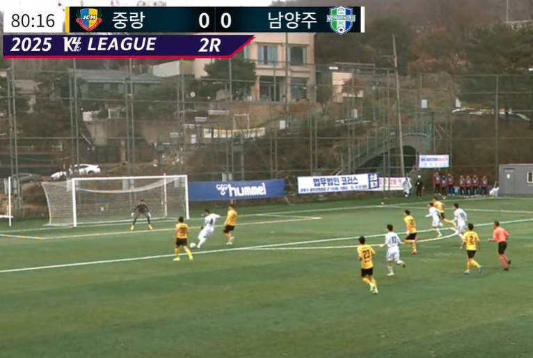 석현준은 이번 경기 벤치에서 시작했다. 전반전 양 팀 팽팽한 흐름이 이어졌다. 리드를 잡는 선취 득점이 나오지 않았다. 남양주는 후방에서 전방으로 한 번에 찔러주는 롱볼을 통해 중랑의 허점을 노렸다. 하지만, 중랑은 수비 라인을 내려 뒷공간을 봉쇄했다. 남양주도 비슷한 방식의 수비를 보여줬다.