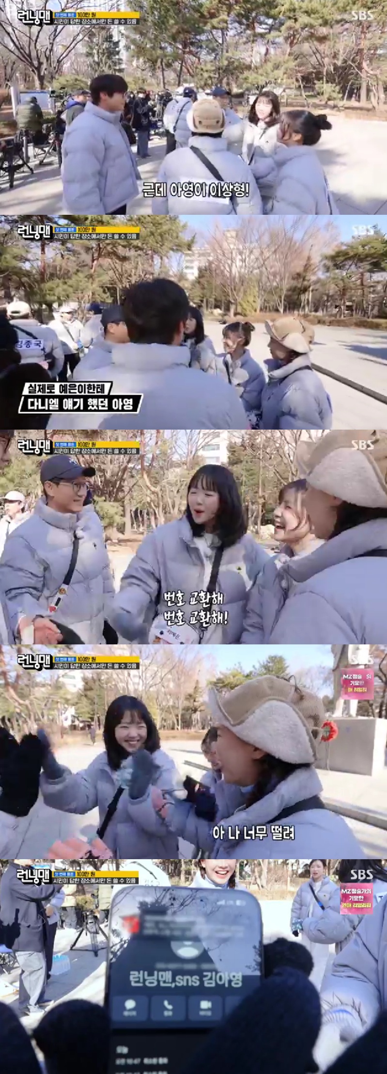 김아영의 번호를 '런닝맨 SNS'라고 등록한 최다니엘이 "아! 'SNL'인데"하고 폭소하자 김아영은 "너무 정 없는 거 아니냐"며 토라졌다.