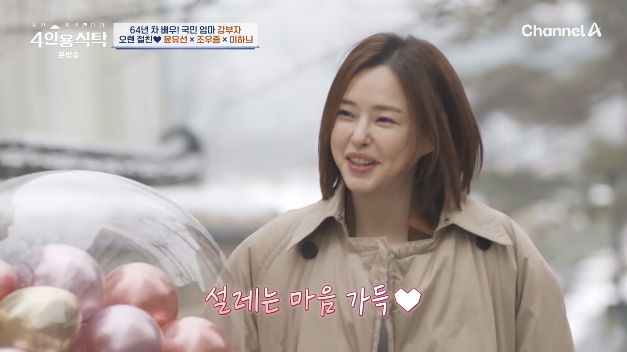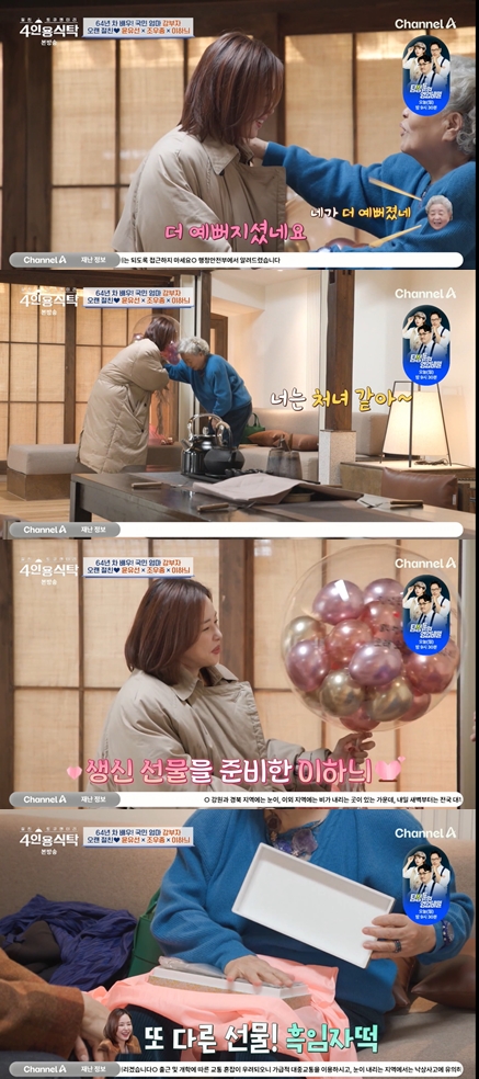 3일 방송된 채널A '절친 토큐멘터리 – 4인용식탁'(이하 '4인용식탁')에서는 국민배우 강부자가 북촌의 한 한옥으로 절친 윤유선, 조우종, 이하늬를 초대해 4인용식탁을 꾸렸다.