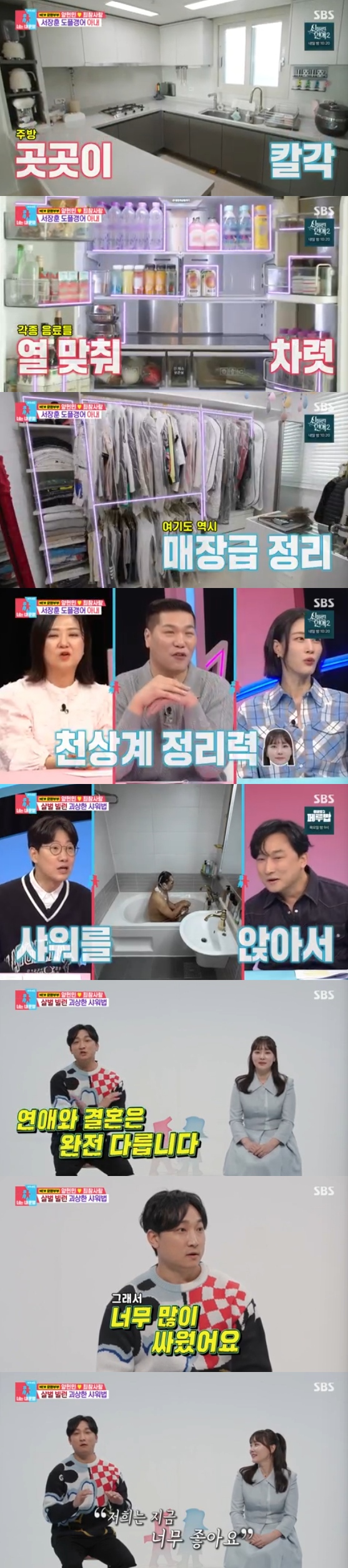 최참사랑은 "저는 정리가 안 되어있으면 좀 불편하다"고 했고, 이에 양현민은 "군대는 각이 정말 중요하지 않냐. 아내는 군대에 갔으면 완전 체질이었을 것"이라고 말해 웃음을 줬다.