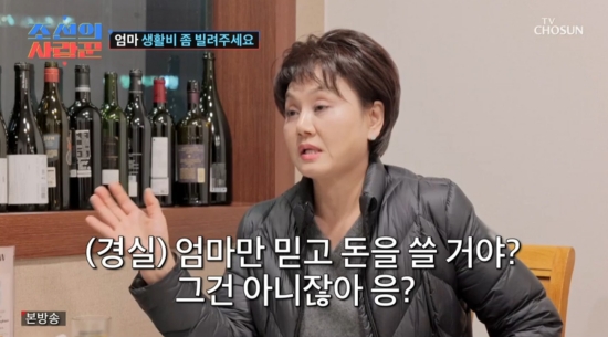 이경실은 "돈? 생활비가 딸려? 편하게 얘기해. 네가 뭐 엄마한테 안 꿨었어?"라며 밝혔고, 손보승은 "갚은 지 너무 얼마 안 되어가지고. 카드값이랑 관리비랑 휴대폰 비랑 200만 원만 꿔주시면 빨리 갚겠다. 빨리는 아니고 조만간"이라며 부탁했다.