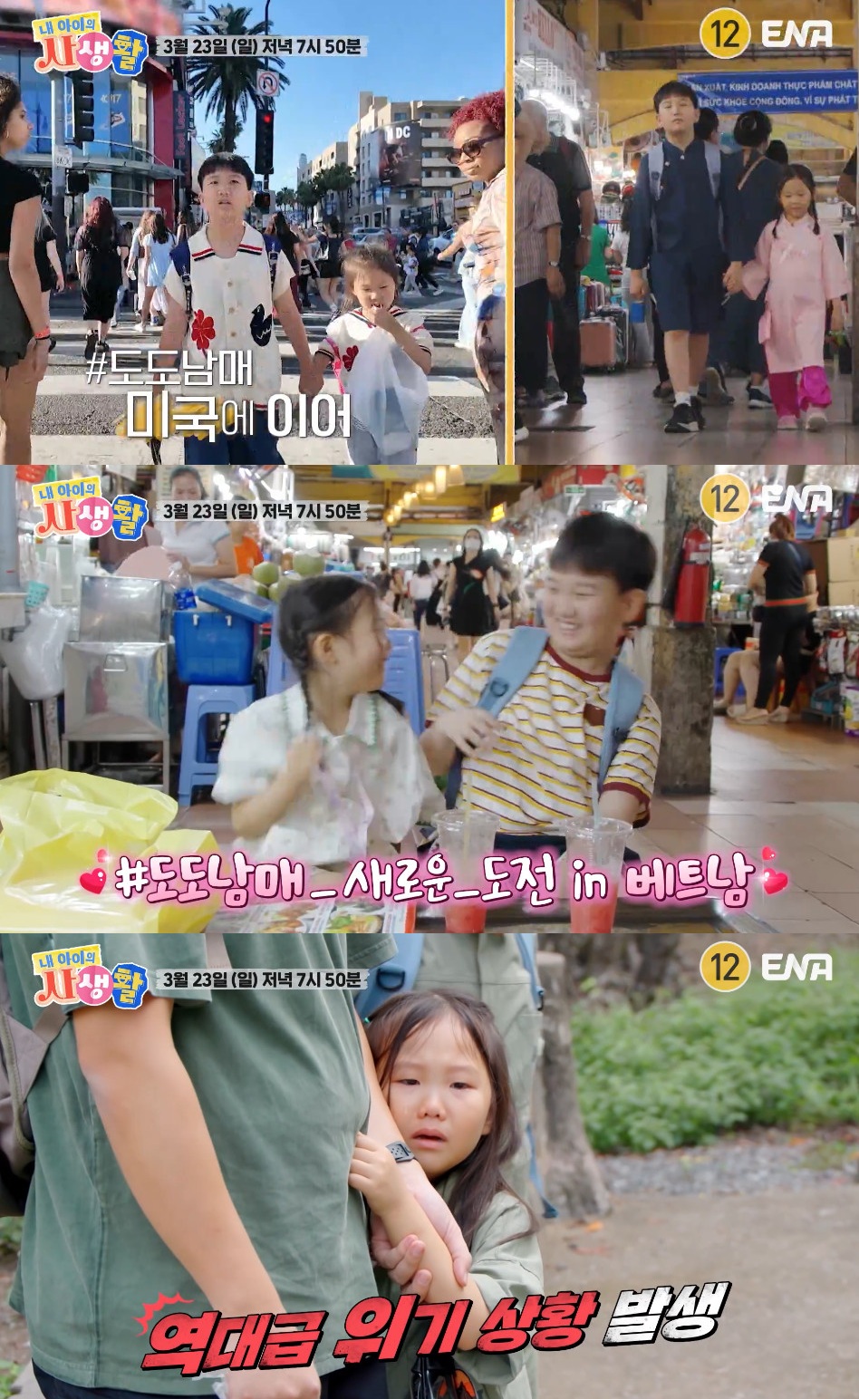 또 한 번 새 도전에 나선 도도남매는 베트남을 즐기던 중 야생 원숭이로 인해 위기를 마주하고 눈물을 흘려 눈길을 끈다.