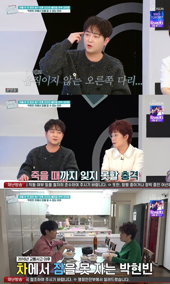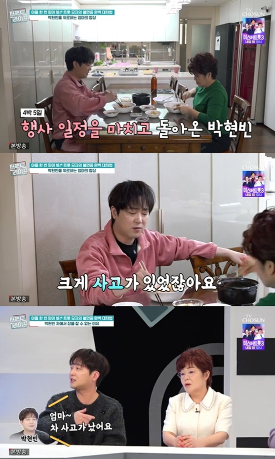 5일 방송된 TV조선 '퍼펙트 라이프'에는 트로트 가수 박현빈과 노래 강사인 어머니 정성을 모자가 함께 출연했다.