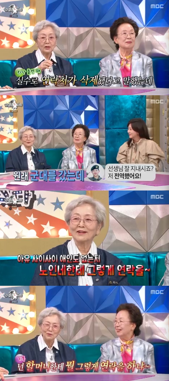 김영옥은 "군대에서 제대한 이후에도 제대했다고 연락이 왔다"고 웃으면서 "애인도 없는지 할머니한테 그렇게 연락을 한다"고 덧붙여 웃음을 자아냈다.