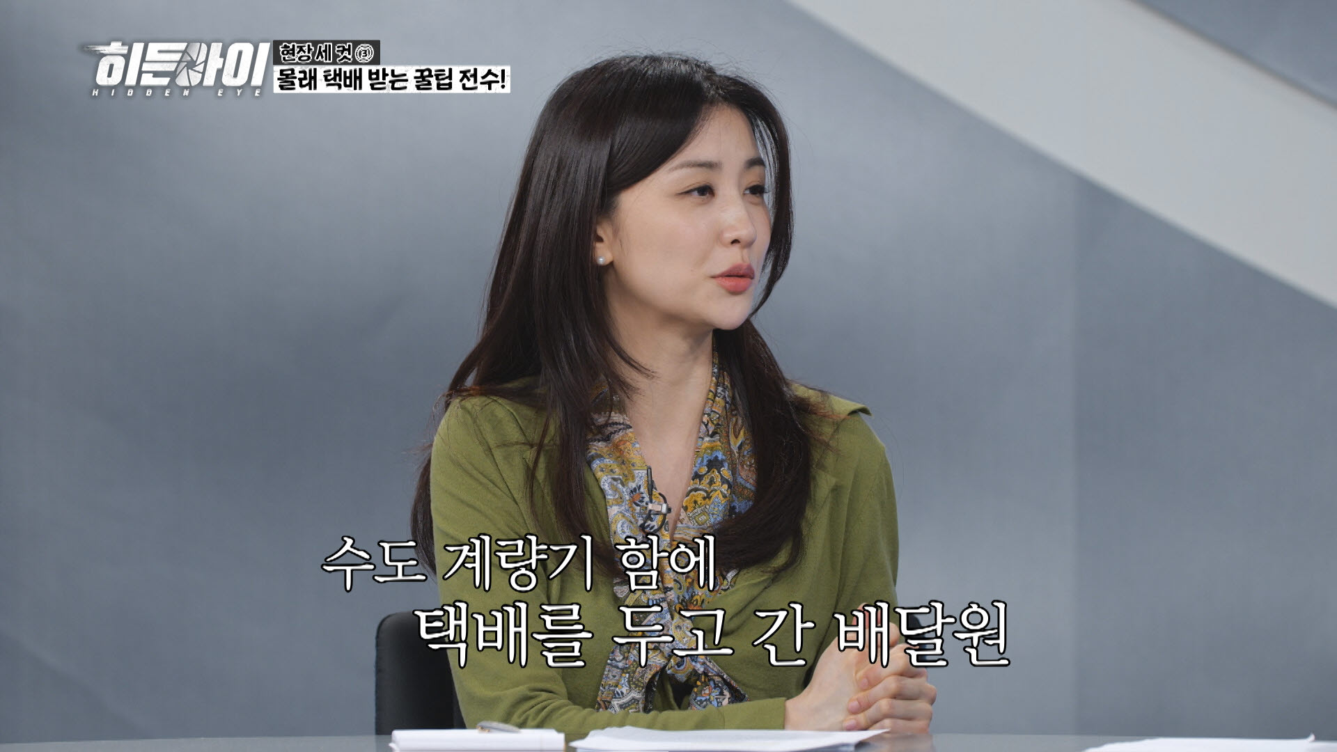 ‘현장 세 컷’에서는 현관 앞 택배를 둘러싼 치열한 전투가 공개된다. 현관 앞에 놓인 택배를 향해 느닷없이 튀어나온 두 남성, 심지어 남성은 흉기까지 들고 있어 보는 이들의 긴장감을 극대화했다. 결코 안전하지 못한 현관 앞 택배 보관! 이 때문에 택배기사들에게 ‘이곳에 택배를 놓아주세요’라는 배송 요청 메시지까지 등장했다.