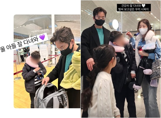 공개된 사진에는 공항에 정준호 이하정 가족이 공항에서 아들을 배웅하는 모습이 담겼다. 이하정은 "울 아들 잘 다녀와", "건강히 잘 다녀와. 벌써 보고 싶은 우리 시욱이" 등의 글을 남겼다.