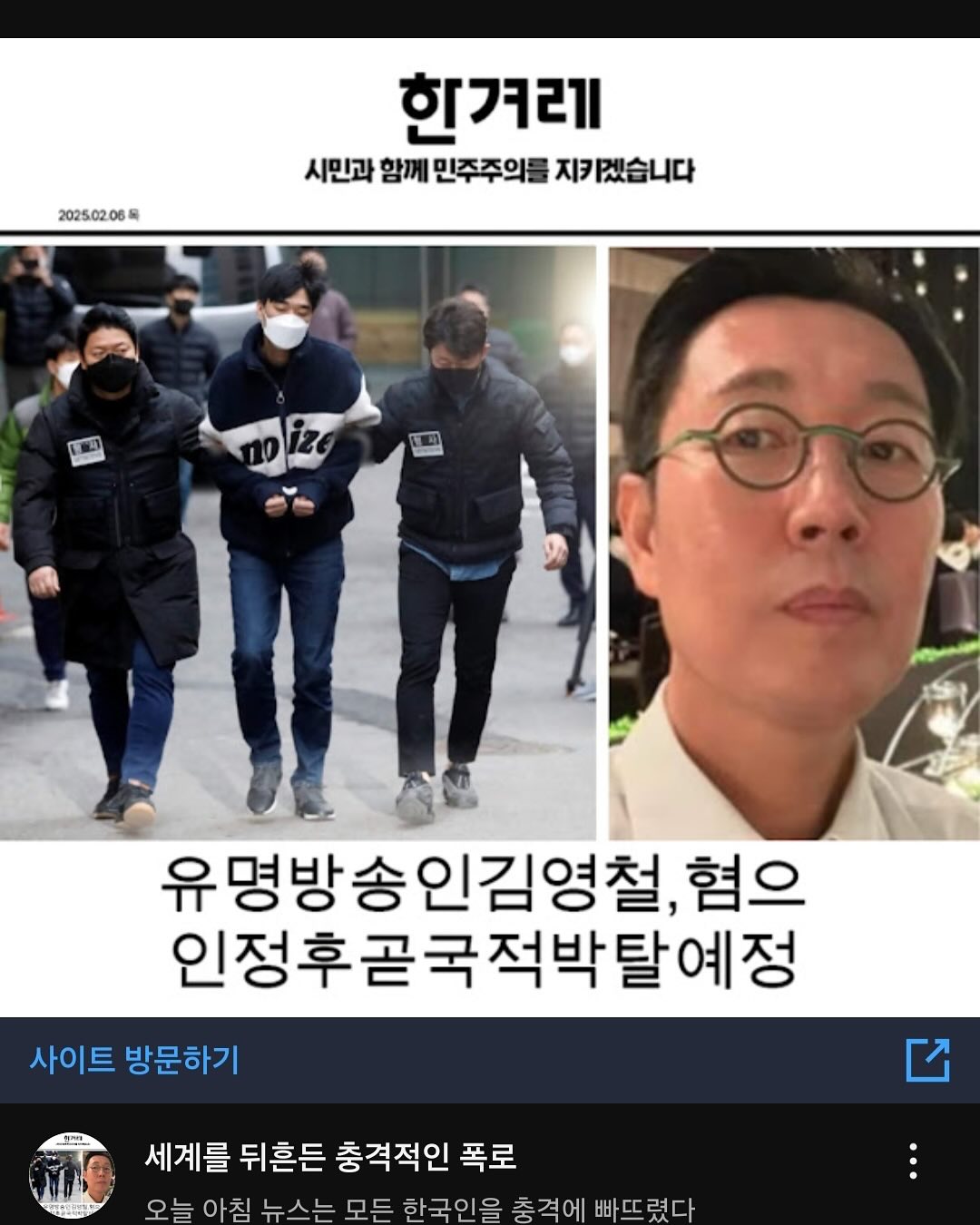 공개된 사진에는 '유명 방송인 김영철, 혐의 인정 후 곧 국적 박탈 예정' 등의 내용이 적힌 글이 담겼는데, 마치 뉴스 기사처럼 편집되어있어 혼란을 주고 있다.