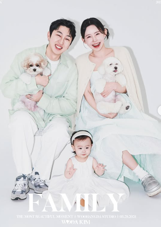 또 다른 사진에서는 슬리피와 아내가 각자 반려견을 안고 있으며, 깜찍한 외모의 첫째 딸이 귀여움을 발산하고 있다. 단란한 가족의 모습이 훈훈함을 자아낸다.
