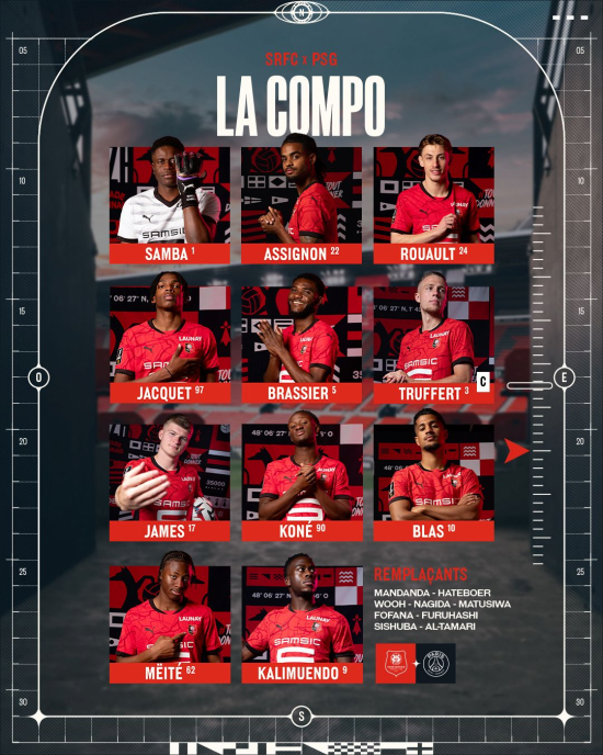 홈 팀 렌은 3-4-3 전형으로 나섰다. 브라이스 삼바 골키퍼가 장갑을 꼈고 릴리앙 브라시에, 앙토니 누올, 제레미 자케가 백3를 구축했다. 이스마엘 코네, 조던 제임스가 중원을 지켰고 윙백은 아드리앙 트루페르, 로렌스 아시뇽이 맡았다. 측면은 아르노 칼리무엔도, 루도빅 블라스, 최전방에 모하메드 메이테가 나와 득점을 노렸다.