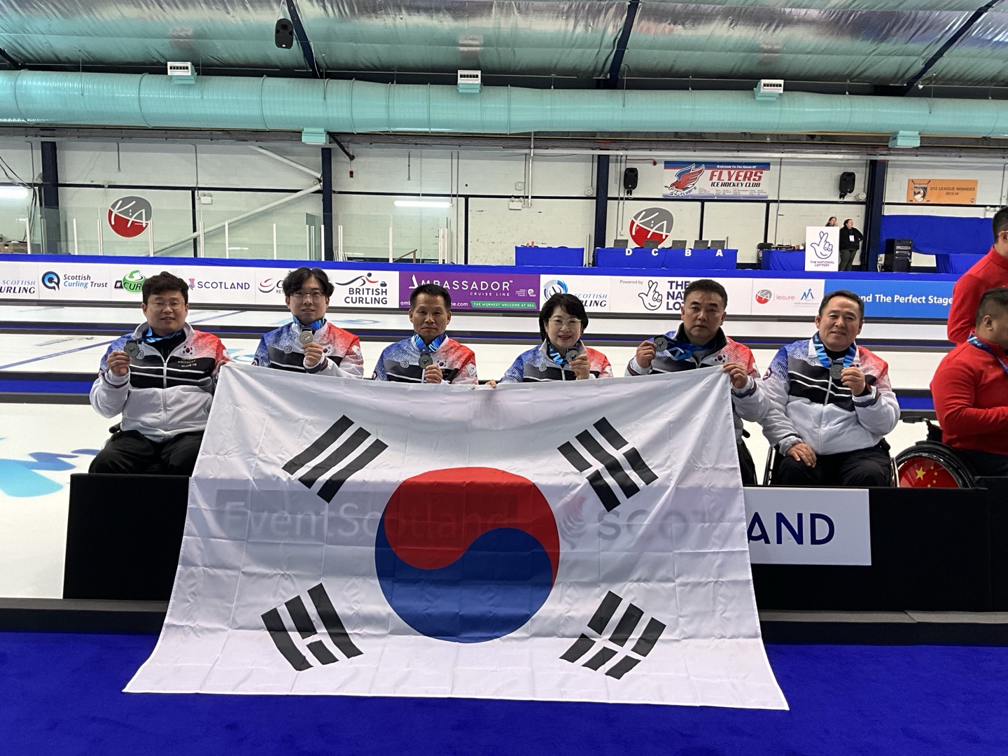 (엑스포츠뉴스 김정현 기자) 지난 1일부터 8일까지 영국 스코틀랜드 솔트코츠에서 열리는 2025 세계휠체어컬링선수권대회에 참가하고 있는 대한민국 휠체어 컬링 국가대표(윤희경, 남봉광, 이현출, 양희태, 차진호)팀이 은메달을 획득하였다.