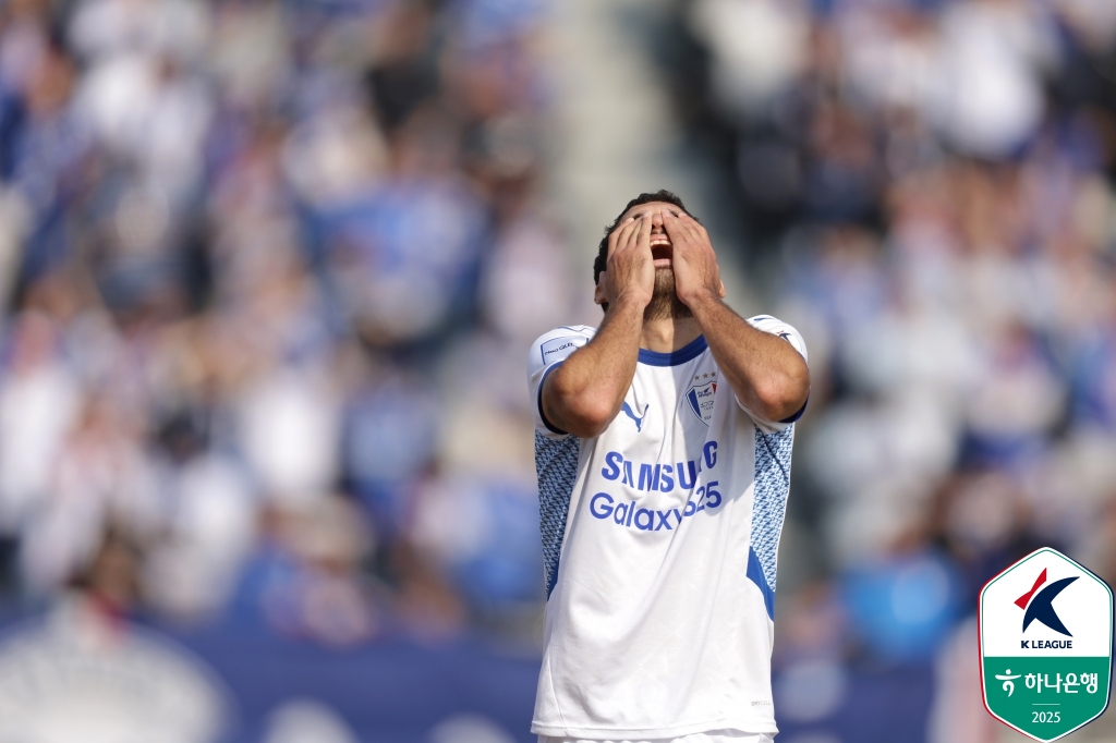 (엑스포츠뉴스 목동, 김정현 기자) 변성환 감독이 이끄는 수원이 9일 서울 목동운동장에서 열린 서울 이랜드와의 '하나은행 K리그2 2025' 3라운드 원정 경기에서 4골을 내주며 2-4로 완패했다.