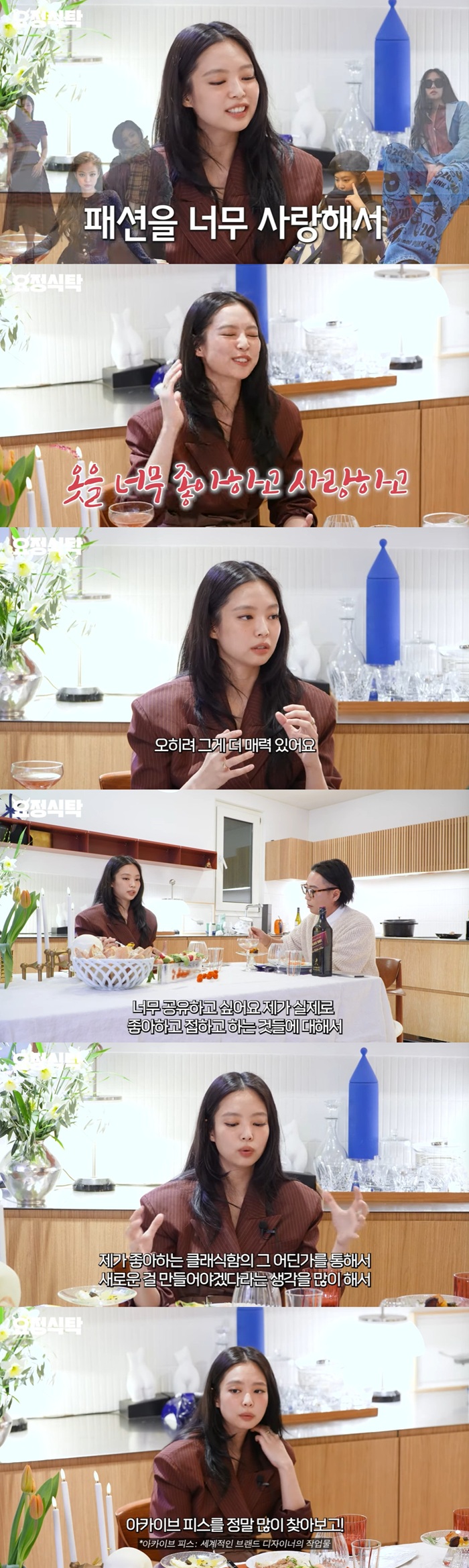 "이것도 작년에 알았다. 난 일단 옷을 너무 좋아하고 사랑한다"는 제니는 "빈티지도 너무 매력있다. 얼마 안하는 이 물건을 좋은 퀄리티로 만났을 때 '이걸 만든 사람은 어떤 이유로 만들고 가격은 왜일까' 생각한다. 이런 거 찾는 게 재밌더라"고 이야기했다.