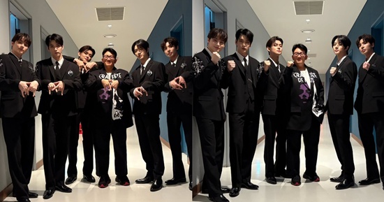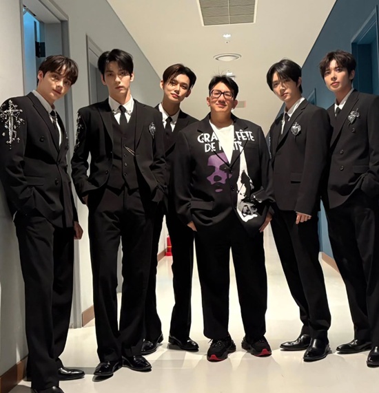 공개된 사진에는 이날 콘서트를 진행한 투모로우바이투게더와 만난 방시혁 의장의 모습이 담겼다. 방 의장은 체중을 크게 감량, 과거의 모습과는 다르게 날렵해진 모습으로 눈길을 끌었다. 그는 멤버들과 나란히 서서 그룹 시그니처 포즈를 하거나 파이팅 포즈를 취하고 있다.