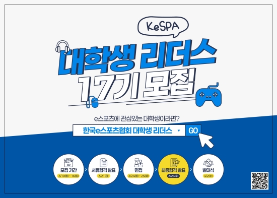 (엑스포츠뉴스 이정범 기자 'KeSPA 대학생 리더스' 17기 모집이 시작됐다.