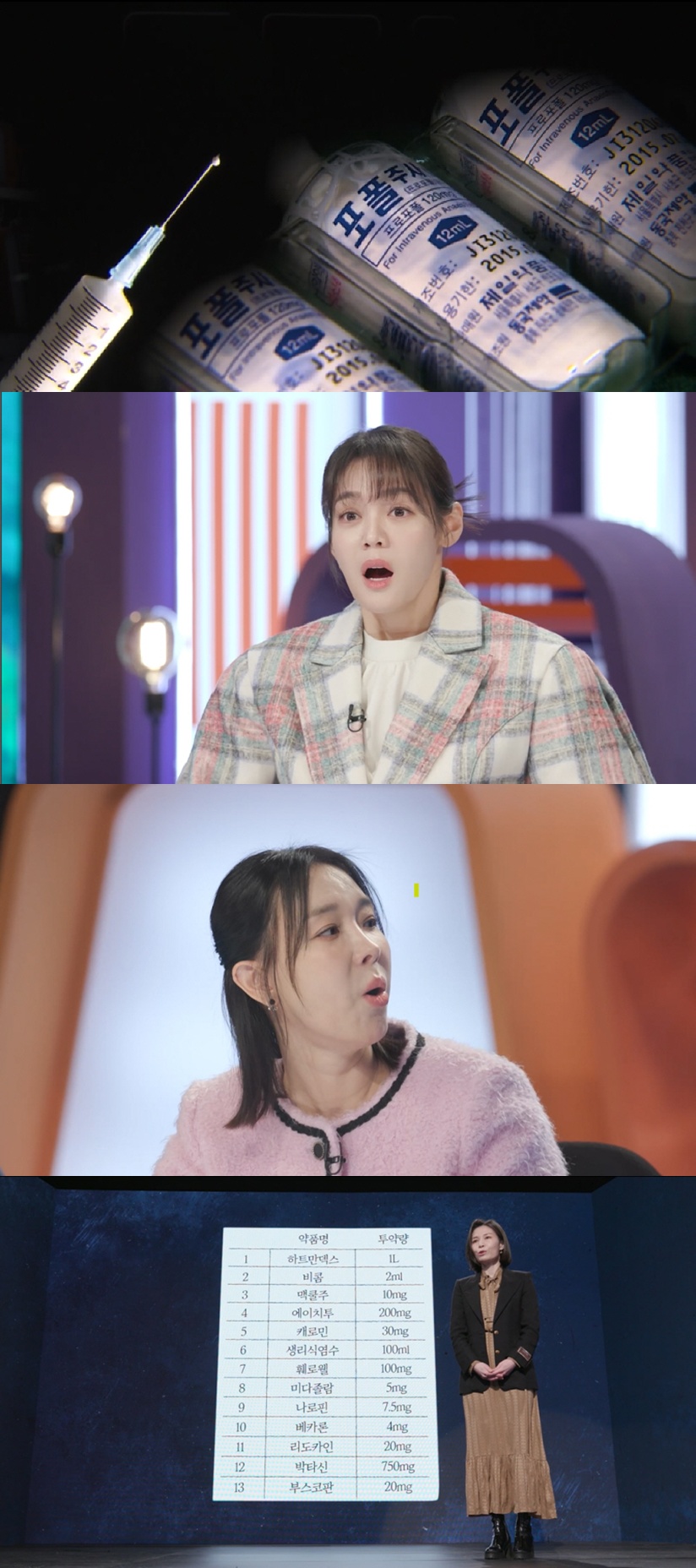 한편 이날 방송에서는 직접 수사를 담당한 곽동규 경감(서울청 광역수사단)이 출연해 사건 당시 상황을 생생하게 증언하고, 서울대병원 마취통증의학과 문지연 교수가 출연해 산부인과 의사가 놓은 12가지 약물에 대해 자세히 분석한다.