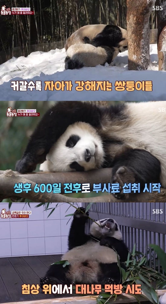 9일 방송된 SBS 'TV 동물농장'은 툭 하면 대나무 밥상을 엎고 루이바오와 아이바오에게 달려드는 사춘기 후이바오와 판다가족의 겨울 일상을 공개해 시청자들의 관심과 놀라움을 자아냈다.