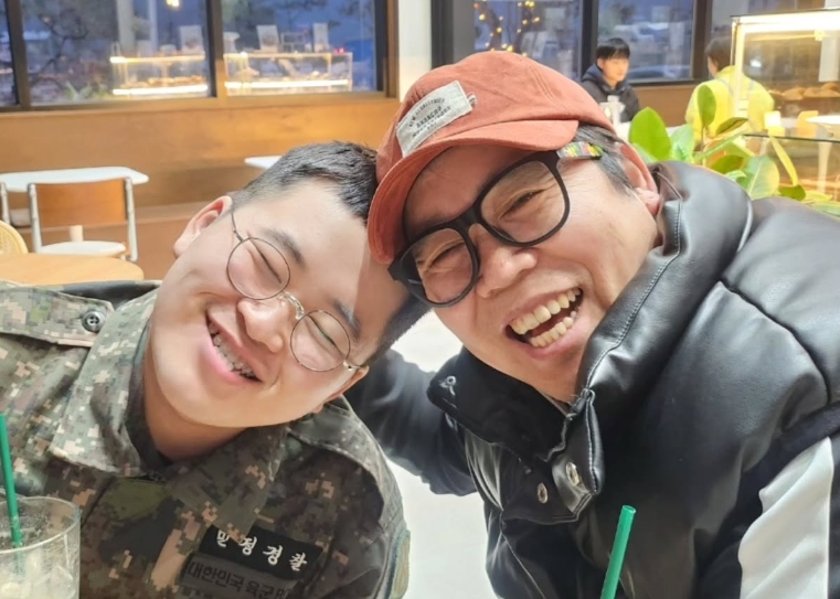 그는 "치과 치료차 얼마전 나왔던 이틀짜리 짧은 휴가에서 얼굴을 봐서 별다른 감흥이 없을줄 알았는데 휴가 복귀 후 살을 5kg이나 감량한 지웅이 얼굴을 보면서 아내도 나도 놀랍기만 했다"며 달라진 비주얼을 언급했다.