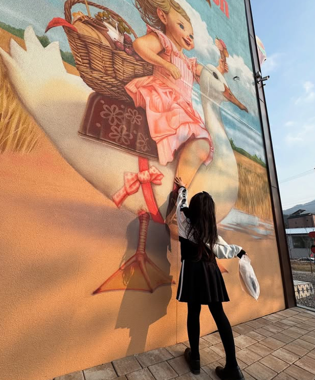 공개된 사진에서는 류수영, 박하선 부부의 딸이 담벼락에 그려진 그림을 배경으로 찍힌 뒷모습이 담겨 있다. 8살이라는 어린 나이임에도 불구하고 우월한 다리 길이가 돋보여 눈길을 끌었다.