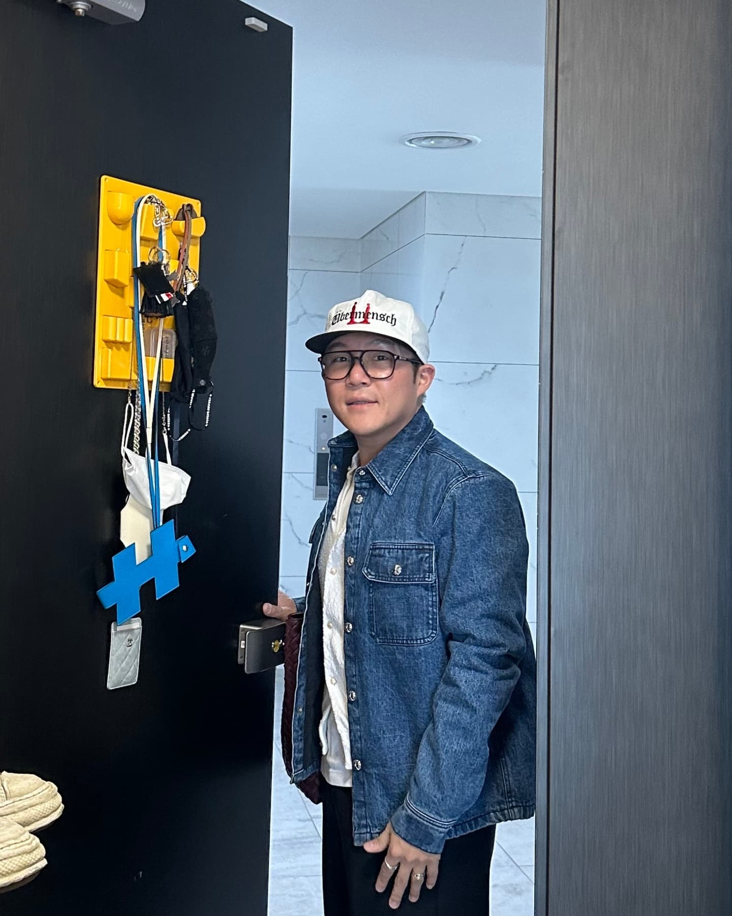 공개된 사진 속 조세호는 집을 나서기 전 현관에서 포즈를 취하는 모습이다.
