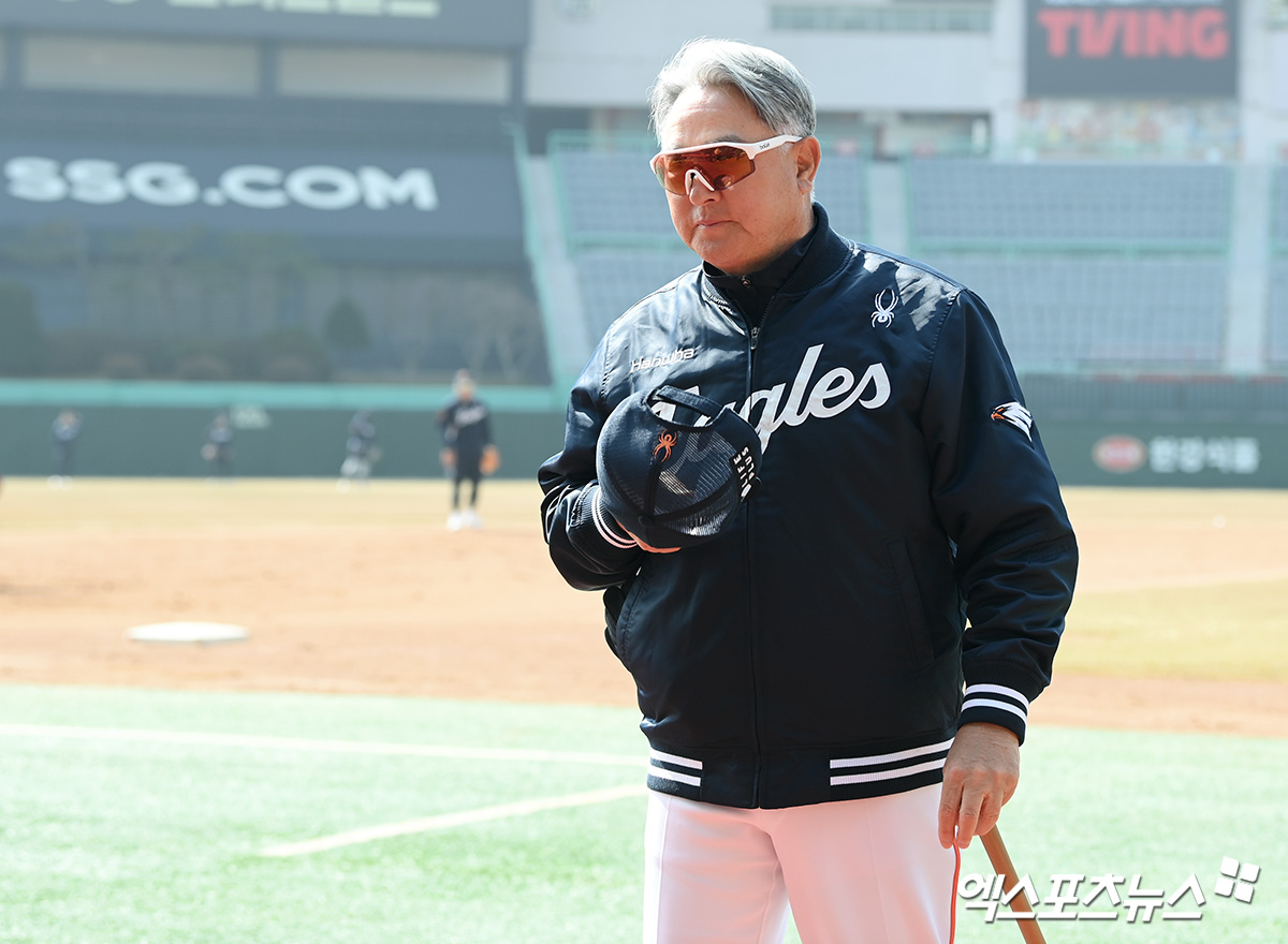 (엑스포츠뉴스 인천, 고아라 기자) 11일 오후 인천SSG랜더스필드에서 열리는 '2025 신한 SOL Bank KBO리그' 한화 이글스와 SSG 랜더스의 시범경기, 한화 김경문 감독이 인터뷰를 준비하고 있다.