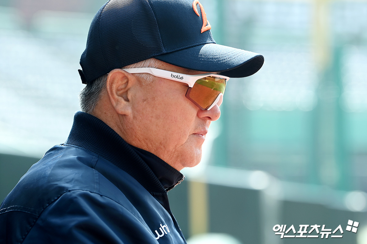 (엑스포츠뉴스 인천, 고아라 기자) 11일 오후 인천SSG랜더스필드에서 열리는 '2025 신한 SOL Bank KBO리그' 한화 이글스와 SSG 랜더스의 시범경기, 한화 김경문 감독이 선수들의 훈련을 지켜보고 있다.