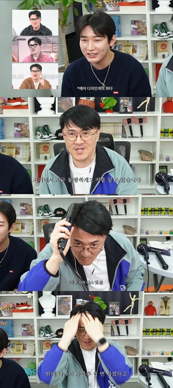 이어 데프콘은 직접 고데기를 사용해 자신의 평소 헤어 스타일링을 선보였다. 이에 최동욱은 "너무 옛날 느낌"이라며 데프콘의 헤어를 수정해주었다.